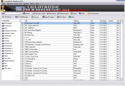نرم افزار 2012 CheatBook DataBase نرم افزاری قدرتمند و بی نظیر و در عین حال جامع ترین نرم افزار در ارائه کد تقلب و رمزهای تمامی بازی های کامپبوتری و همچنین تمامی کنسول های بازی نظیر ایکس باکس, پلی استیشن 3, پلی استیشن 2, پلی استیشن 1, سگا و ... است. 2012 CheatBook DataBase دارای کدتقلب بیش از 20000 بازی از تمام کنسولهای بازی است. با داشتن این نرم افزار شما تمامی چیت کدها و رمزهای تمامی بازیها را در اختیار دارید و دیگه نیازی به گشت و گذار در اینترنت و صرف هزینه برای به دست آوردن رمز بازیها نخواهید داشت. همچنین در این کتاب رمز بازی راهنمایی گذراندن بسیاری از مراحل سخت و دشوار بازیها که تا بحال نتوانسته اید آنها را طی کنید قرار دارد.